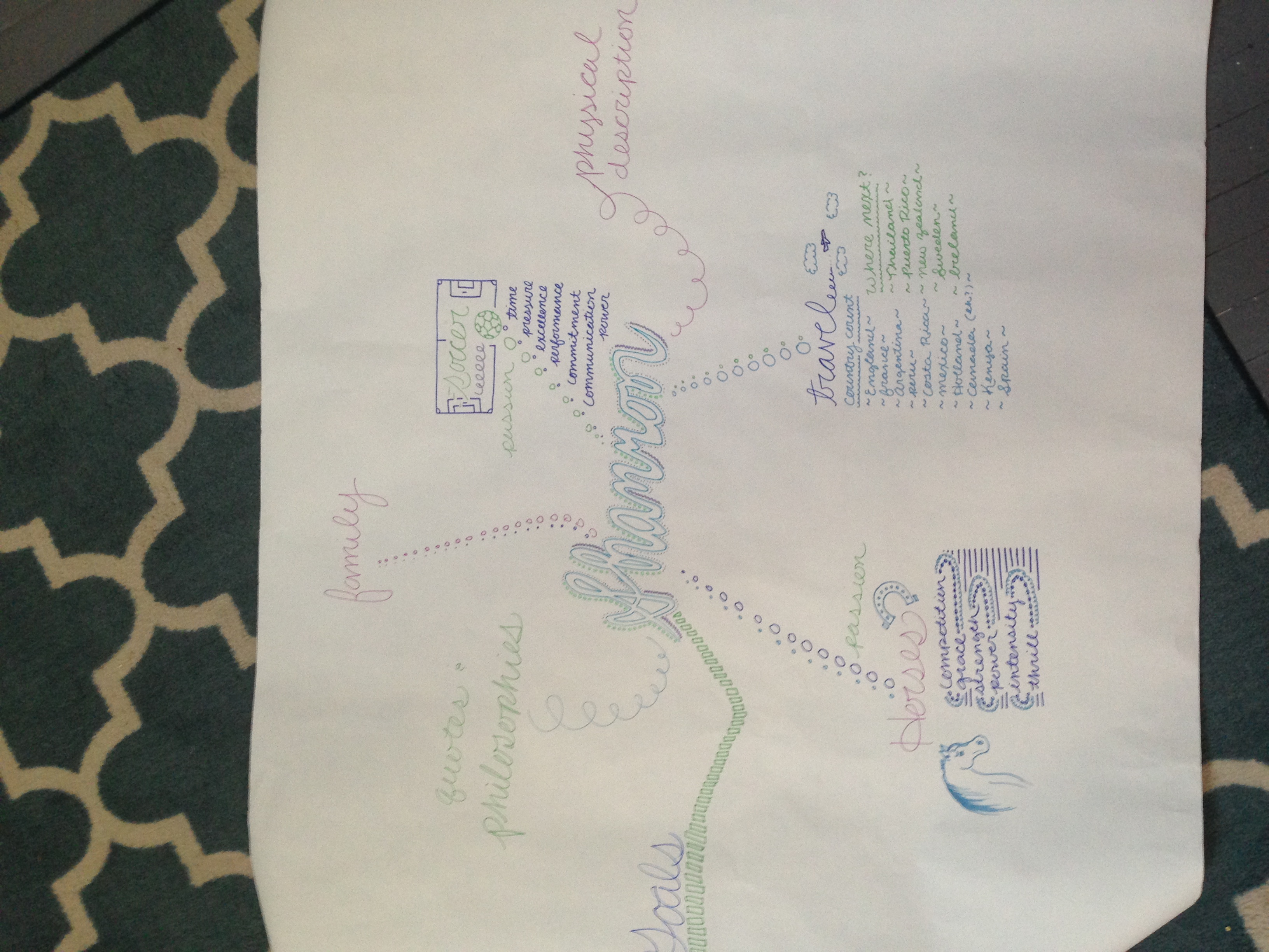 This is the beginning of my concept map. I am trying to not plan it out as much as I typically would, since not having straight lines generally bother me. I like charts and webs such as these to be highly ordered an structured, though I am trying for more freedom in this and hoping that I will group more comfortable with it as the page fills.