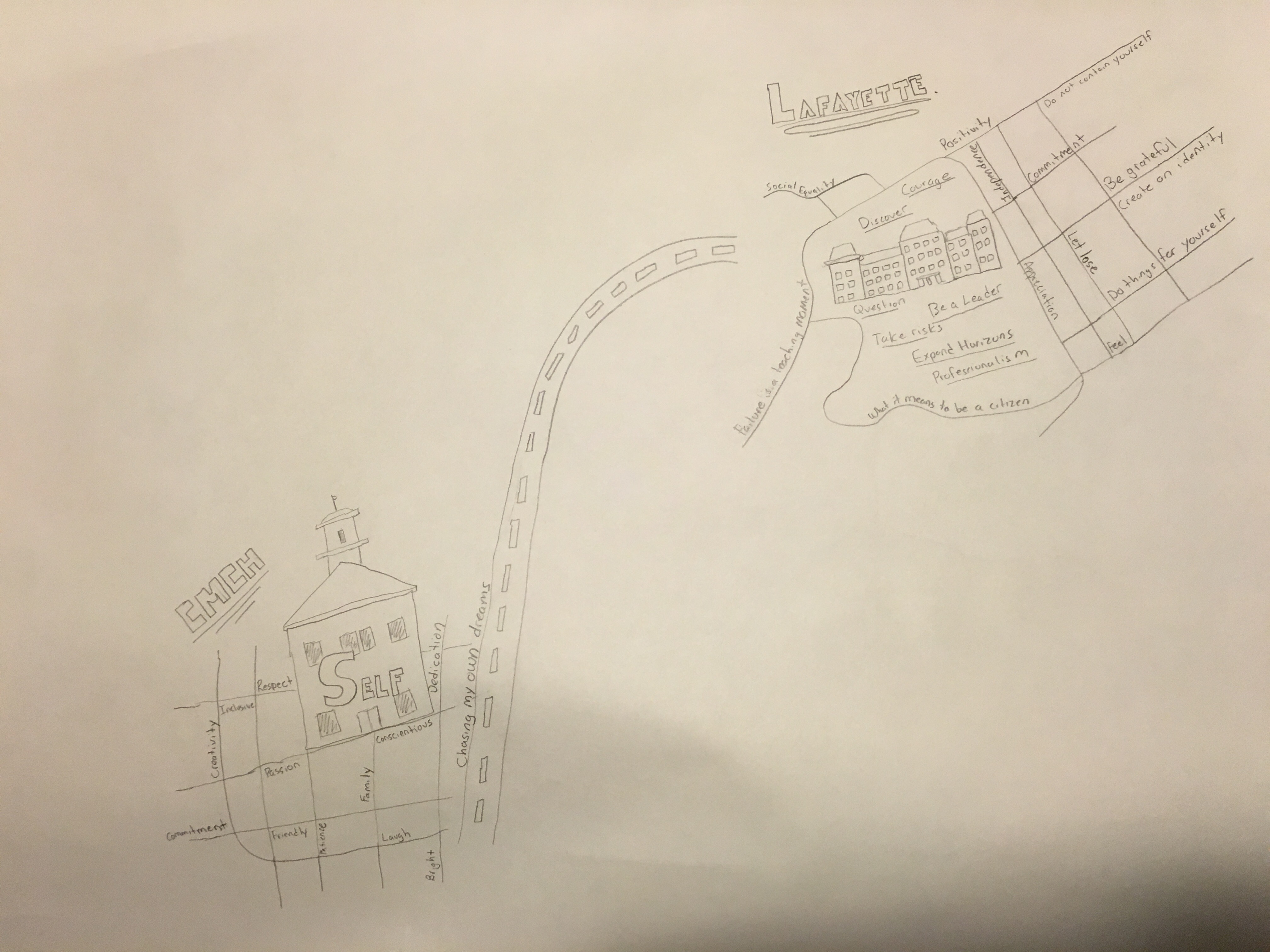 I forgot to post a picture last week but I essentially only had the outline of what I currently have. The idea here is to combine the two lives that I have lived. One in Kenya and one in America. Within these maps will be contained pictures and words of what each country means to me / the opportunities that it has granted me. And branching from the bridge will be the lessons that I have learned from both and my current hopes and dreams. I’m not sure if that’s exactly how it’s going to end up but for now this is what I’m thinking.