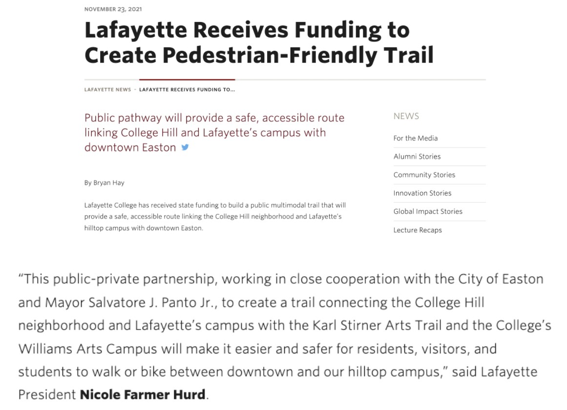 Lafayette Media on MTF Grant for Pedestrian Trail