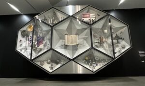 The main exhibition had two primary sections as well as numerous subsections. The two main exhibits included: Jewish Life in Germany: Past and Present and German Jews Today. After the Kafka exhibit, we first visited Jewish Life in Germany: Past and Present. This section covered topics surrounding Jewish life and culture, aligned with some history of the past and present. We saw great art pieces with visual, auditory, and experiential aspects, along with many artifacts, both recent and ancient. This section covered most of the museum, starting in the basement—with many slopes, turns, and architectural aspects designed to disorient visitors—and continuing on the second and first floors.