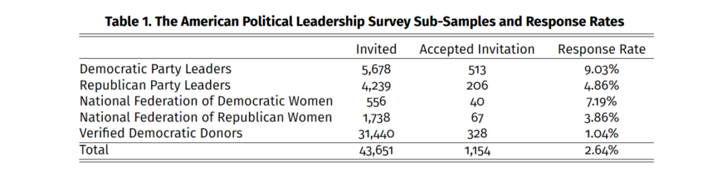 Over months of careful research, Gov Lab students constructed a novel sampling from 40,000+ verified emails of political donors, local party leaders from both major parties, and party activists from both major parties across all counties in the U.S.